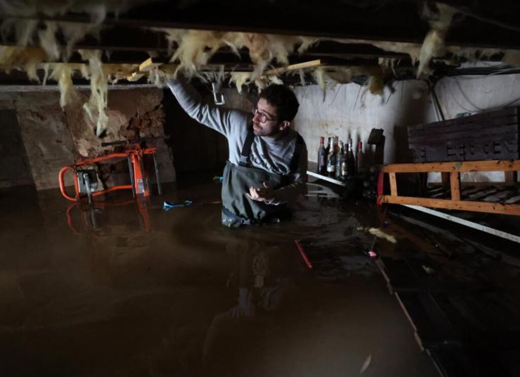 | Un habitant dans sa cave inondée à Saint-Etienne-au-Mont, dans le Pas-de-Calais, le 15 novembre. |