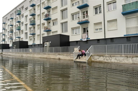 | Une rue d'Elbeuf inondée par la crue de la Seine, le 5 juin. |