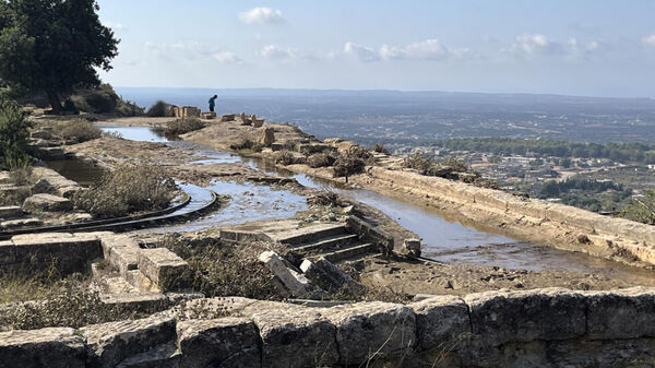 | Les ruines de l’ancienne cité gréco-romaine de Cyrène (Shahhat) dans l’Est de la Libye, à environ 60 km à l’ouest de Derna, le 21 septembre 2023, à la suite d’une inondation dévastatrice. |