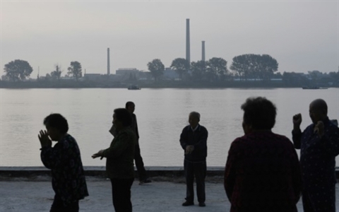 | La rivière Yalu le 12 septembre entre la ville chinoise de Dandong et la ville nord-coréenne de Sinuiju. |