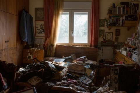 | Un intérieur dévasté le 16 novembre 2017 après les fortes inondations qui ont affecté la localité de Mandra (nord-ouest d'Athènes). |