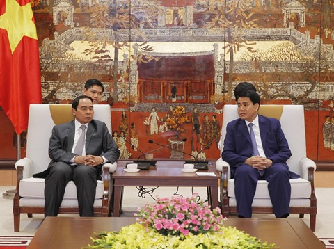 | Le président du Comité populaire de Hanoï, Nguyên Duc Chung (droite), et le vice-Premier ministre du Laos, Buonthong Chitmany. |