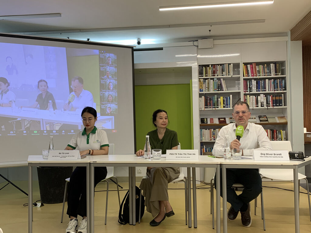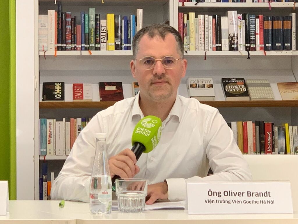 | Le directeur de l’Institut Goethe, Oliver Brandt, s’exprime lors de l’événement. Photo : Hoàng Phuong/CVN |