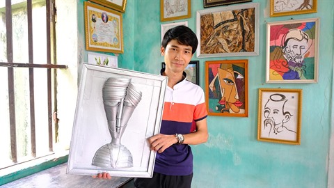 Les peintures de Giang ne connaissent pas qu’un succès sur la toile, elles sont aussi exposées dans les écoles et présentées aux petits élèves lors des cours sur l’environnement et le recyclage des déchets. "Giang est un garçon intelligent, créatif et curieux. Ses œuvres sont uniques et constituent chacune une leçon de recyclage des déchets et de protection de l'environnement. Je prends souvent Giang en exemple lorsque je parle à mes élèves de la volonté de surmonter les épreuves de la vie et de l’importance de préserver la nature qui nous entoure", dit Trân Thi Triêu, enseignante du Lycée Trung Chinh (commune de Tân Lang, district de Luong Tài).