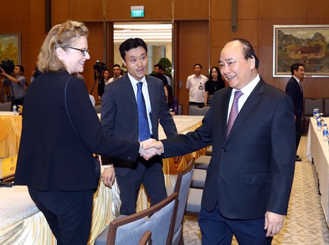 | Le Premier ministre Nguyên Xuân Phuc rencontre des délégués à la conférence. Photo: VAB/CVN |