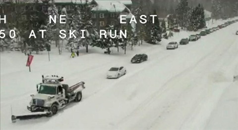 | Une autoroute en train d'être déneigée à Lake Tahoe, en Californie, le 27 décembre. |