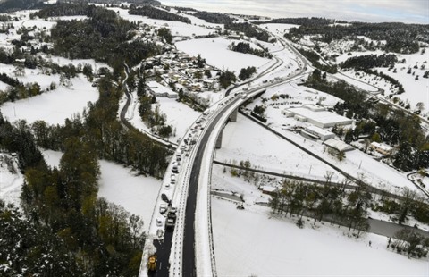 | La route nationale 88 sous la neige près de Firminy dans la Loire le 30 octobre. |