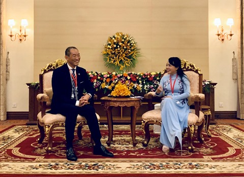 | La ministre Nguyên Thi Kim Tiên et le directeur de l’Organisation mondiale de la santé pour le Pacifique de l’Ouest, Takeshi Kasai. |