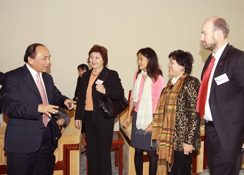 | Le vice-Premier ministre Nguyên Xuân Phúc (1er, gauche) rencontre des délégués. |