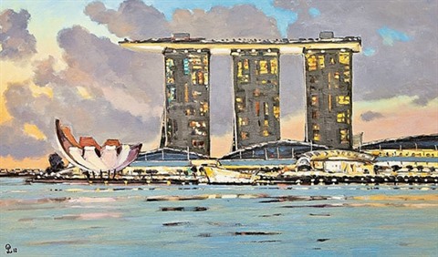 | "Dans la baie Marina à Singapour", une oeuvre du peintre Pham Luân en exposition à The Arts House Singapore. |