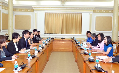 | La vice-présidente de Hô Chi Minh-Ville, Nguyên Thi Thu (2e à droite) rencontre le 9 janvier une délégation de la préfecture d'Osaka (Japon). |