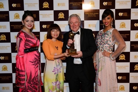 | Une représentante de l’InterContinental Danang Sun Peninsula Resort (2e à gauche) reçoit le prix de WTA, le 13 décembre au Maroc. |