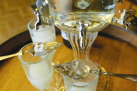 L’absinthe tire aussi son succès d’un rituel précis : goutte à goutte, l’eau tombe sur un sucre, posé sur une cuillère ajourée, qui vient troubler l’absinthe au fond du verre.