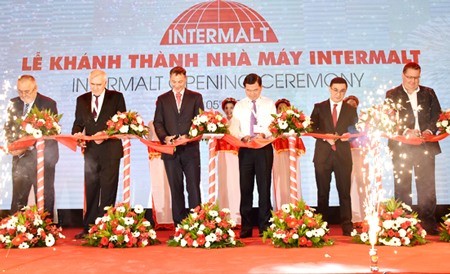 | La cérémonie d'inauguration de l'usine Intermalt dans la zone industrielle de Cai Mep, province de Bà Ria-Vung Tàu (Sud). |