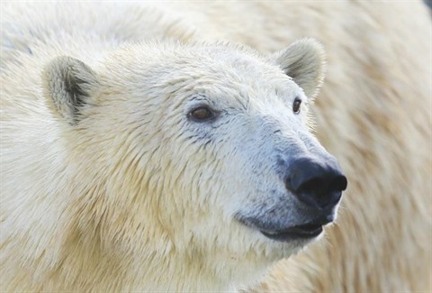 | Un ours polaire, photographié au zoo de Rostock en Allemagne en 2018. |