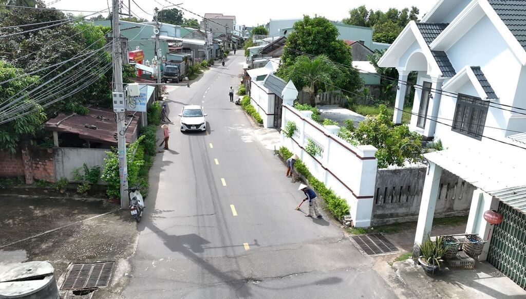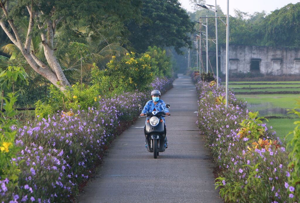 | Les routes rurales de Cân Tho ont été bétonnées et bordées de fleurs, créant un paysage vert et propre. |