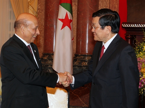 Le président Truong Tân Sang a proposé à l’Algérie de mettre en place des conditions propices aux activités des entreprises vietnamiennes opérant dans ce pays du Maghreb, en recevant le président de l’APN alégérienne, Mohamed Larbi Ould Khelifa, en visite au Vietnam dans le cadre de l'IPU-132.