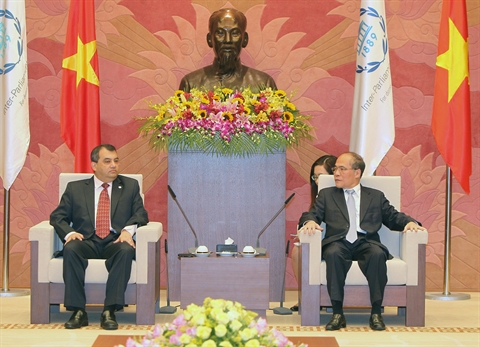 Les responsables de l'IPU, en visite au Vietnam pour participer à l'IPU-132, ont été reçus mercredi 25 mars à Hanoi par le président de l'Assemblée nationale (AN) vietnamienne Nguyên Sinh Hùng, qui a exprimé sa conviction que forts de leurs expériences et prestige, cette conférence au Vietnam sera réussie.