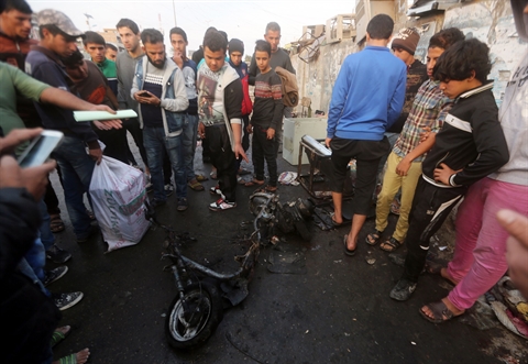 | Lieu d'un double attentat à la bombe dans l'est de Bagdad, le 28 février. |