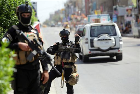 | Des membres des forces anti-terroristes surveillent Bagdad le 29 avril 2014. |