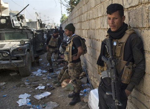 | Des soldats de la 2e division des forces spéciales irakiennes attendent pour avancer dans le quartier Al-Samah de Mossoul, le 11 novembre 2016. |