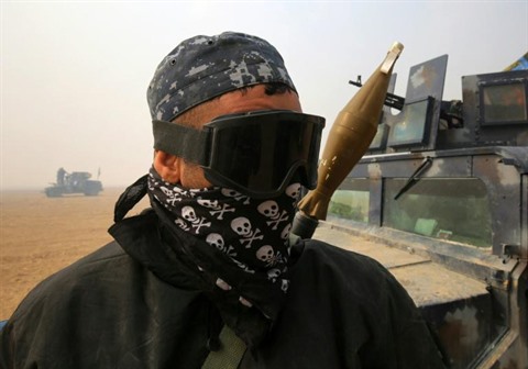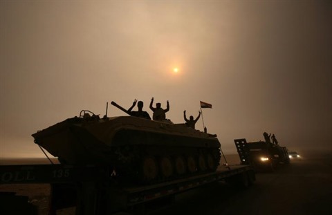 | Des membres des forces irakiennes près de Mossoul, le 24 octobre. |
