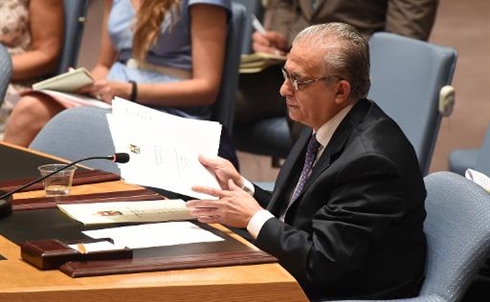 | L'ambassadeur irakien à l'ONU, Mohamed Ali Alhakim lors de la session le 15 août |