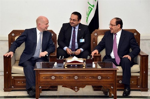 | Le chef de la diplomatie britannique William Hague (gauche) et le Premier ministre irakien Nouri al-Maliki (droite), |
