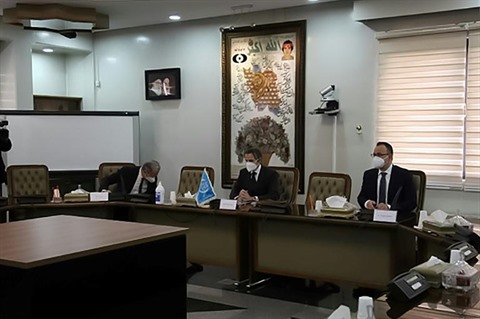 | Photo fournie par l'Organisation iranienne de l'énergie atomique, montrant le directeur de l'Agence internationale de l'énergie atomique Rafael Grossi (Centre), lors d'une réunion à Téhéran, le 21 février. |