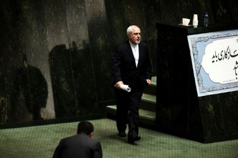 | Javad Zarif le 21 juillet à Téhéran, après avoir défendu devant les députés iraniens l'accord sur le programme nucléaire de la République islamique avec les grandes puissances. |