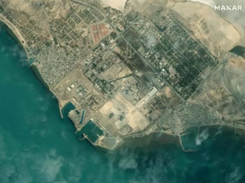 | Image satellite fournie par Maxar Technologies le 8 janvier 2020 de la centrale nucléaire de Bouchehr, dans le Sud de l'Iran. |