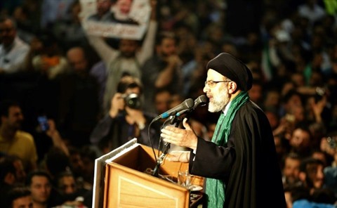 | Le candidat conservateur battu à la présidentielle en Iran Ebrahim Raissi, lors d'un meeting à Téhéran, le 16 mai 2017. |