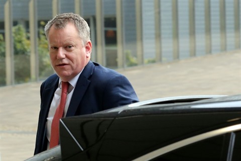 | Le secrétaire d’État britannique en charge du Brexit, David Frost, à Bruxelles, le 15 octobre. |