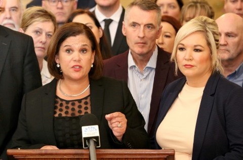 | Mary Lou McDonald (g), présidente du parti républicain Sinn Fein, et sa vice-présidente Michelle O'Neill (d), lors d'une conférence de presse à Belfast, le 10 janvier 2020. Photo : AFP/VNA/CVN |