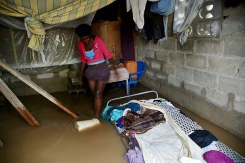 | Une femme dans sa maison inondée à Malfati, au Cap-Haïtien, après le passage de l'ouragan Irma, le 8 septembre à Haïti. |
