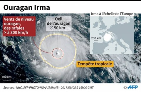 >>L'ouragan Irma, passé en catégorie 5, s'approche des Antilles