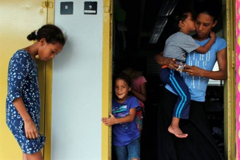 | Une famille dans un centre d'accueil de Luquillo, à Porto Rico, à l'approche de l'ouragan Irma, le 6 septembre. |
