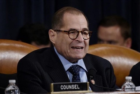 | Le chef démocrate de la Commission judiciaire de la Chambre des représentants, Jerry Nadler, préside, le 11 décembre le débat sur les chefs d'accusation visant Donald Trump dans la procédure de destitution. |