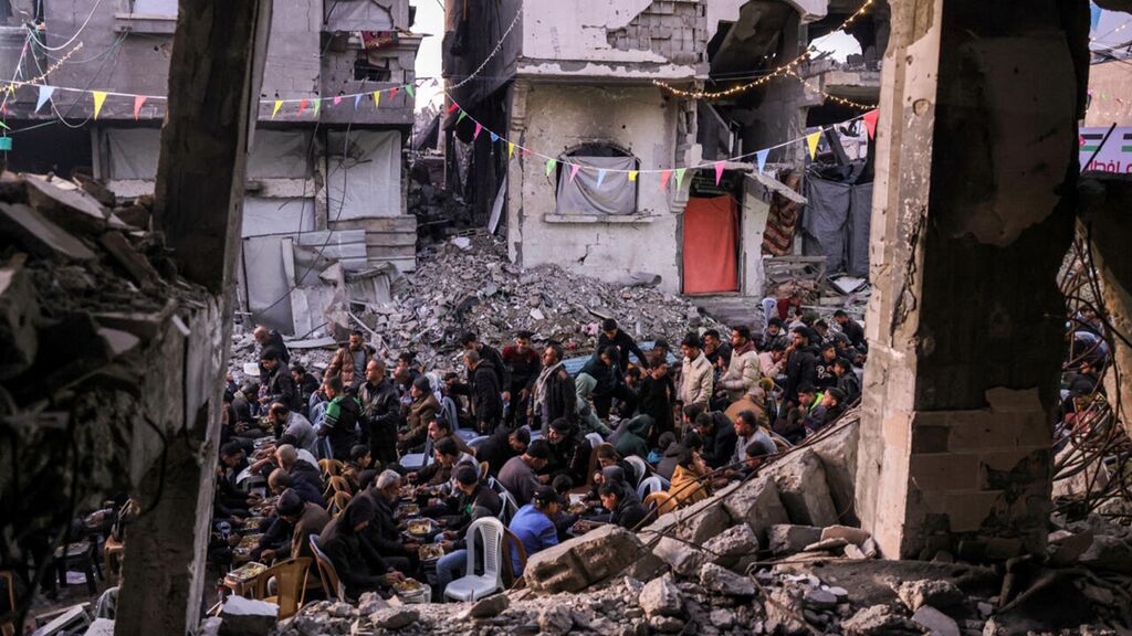 | Des Palestiniens se préparent à rompre le jeûne à la fin du premier jour du ramadan, le 1er mars à Jabalia, dans le nord de la bande de Gaza. |