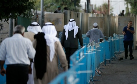 | Des Palestiniens le 10 juin au point de passage entre Bethléhem et Jérusalem. |