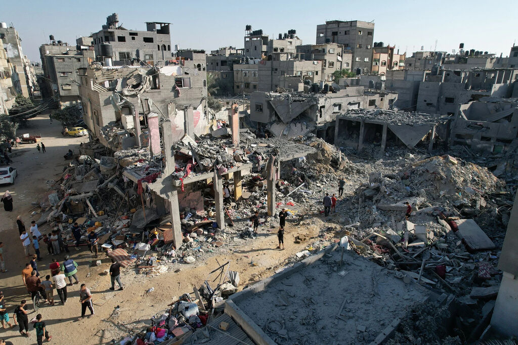 | Destructions causées par une attaque israélienne sur Khan Yunes, à Gaza, le 25 octobre 2023. |