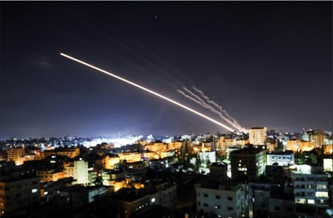 | Tirs de roquettes depuis Gaza en direction d'Israël le 15 mai 2021. |