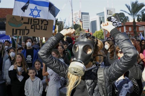 | Des Israéliens manifestent contre le projet d'exploitation du gisement gazier Leviathan, à Tel Aviv, le 31 décembre 2019. |
