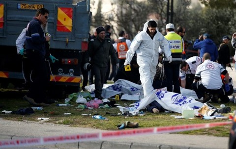 Des équipes de secours sur le site d'une attaque au camion, le 8 janvier à Jérusalem. Photo : AFP/VNA/CVN |