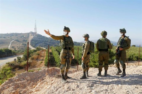 | Des militaires israéliens surveillent la frontière avec le Liban près de Metula, le 14 juillet. |