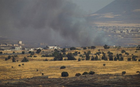 | Photo des bombardements israéliens en territoire syrien prise depuis la partie occupée du mont Golan, le 24 juin 2017 |