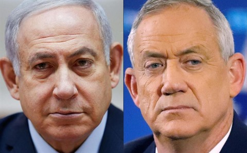 | Le Premier ministre israélien Benjamin Netanyahu (gauche) et de son adversaire Benny Gantz. |