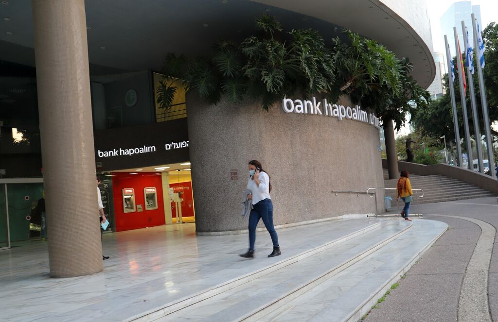 | Devant la banque Hapoalim, à Tel Aviv, en Israël. |