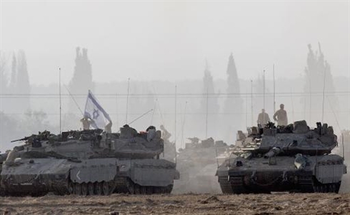 | Des chars d'assaut Merkava de l'armée israélienne près de la frontière avec la bande de Gaza, le |