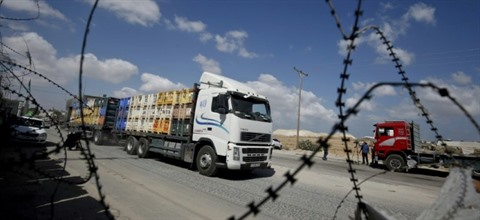 | Un camion de marchandises approche du point de passage de Kerem Shalom entre Israël et la bande de Gaza, le 15 août 2018. |